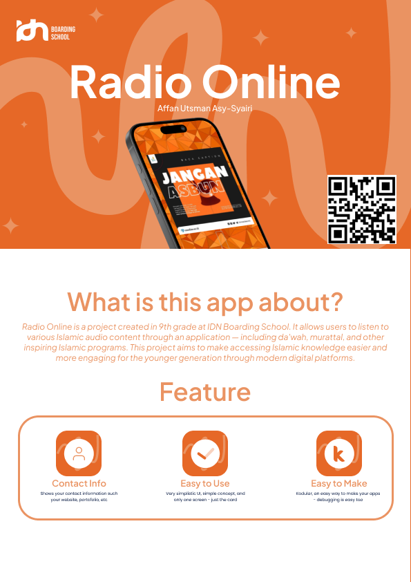 And,Hi everyone, This is my project in IT Lesson to accomplish the target, this project i have to make a Design and code in Kodular. My project name is “Radio Online”.