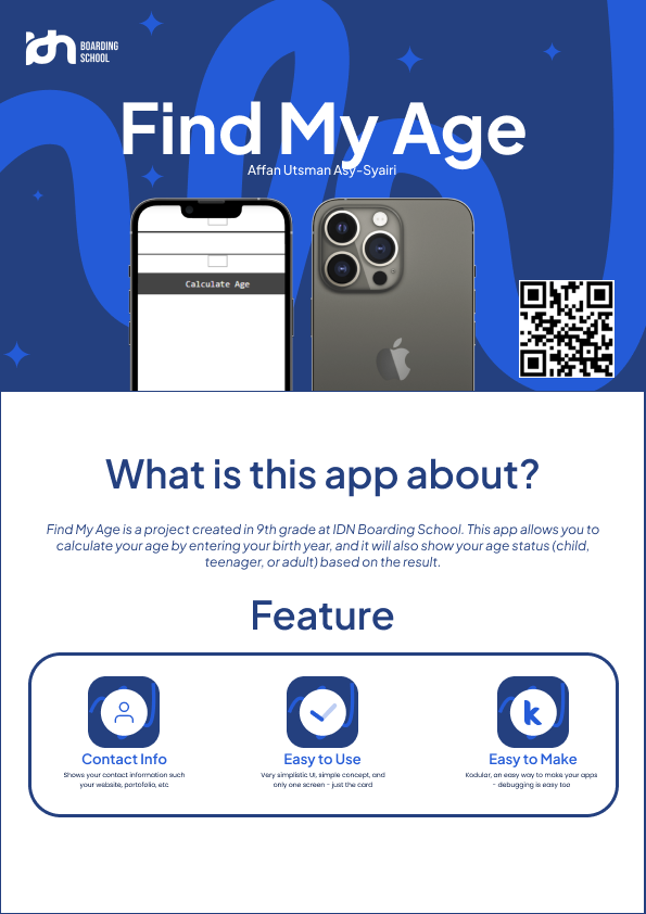 And,Hi everyone, This is my project in IT Lesson to accomplish the target, this project i have to make a Design and code in Kodular. My project name is “Find My Age”.Find My Age App is a simple application built with Kodular.io to calculate the user’s age based on the entered date of birth.